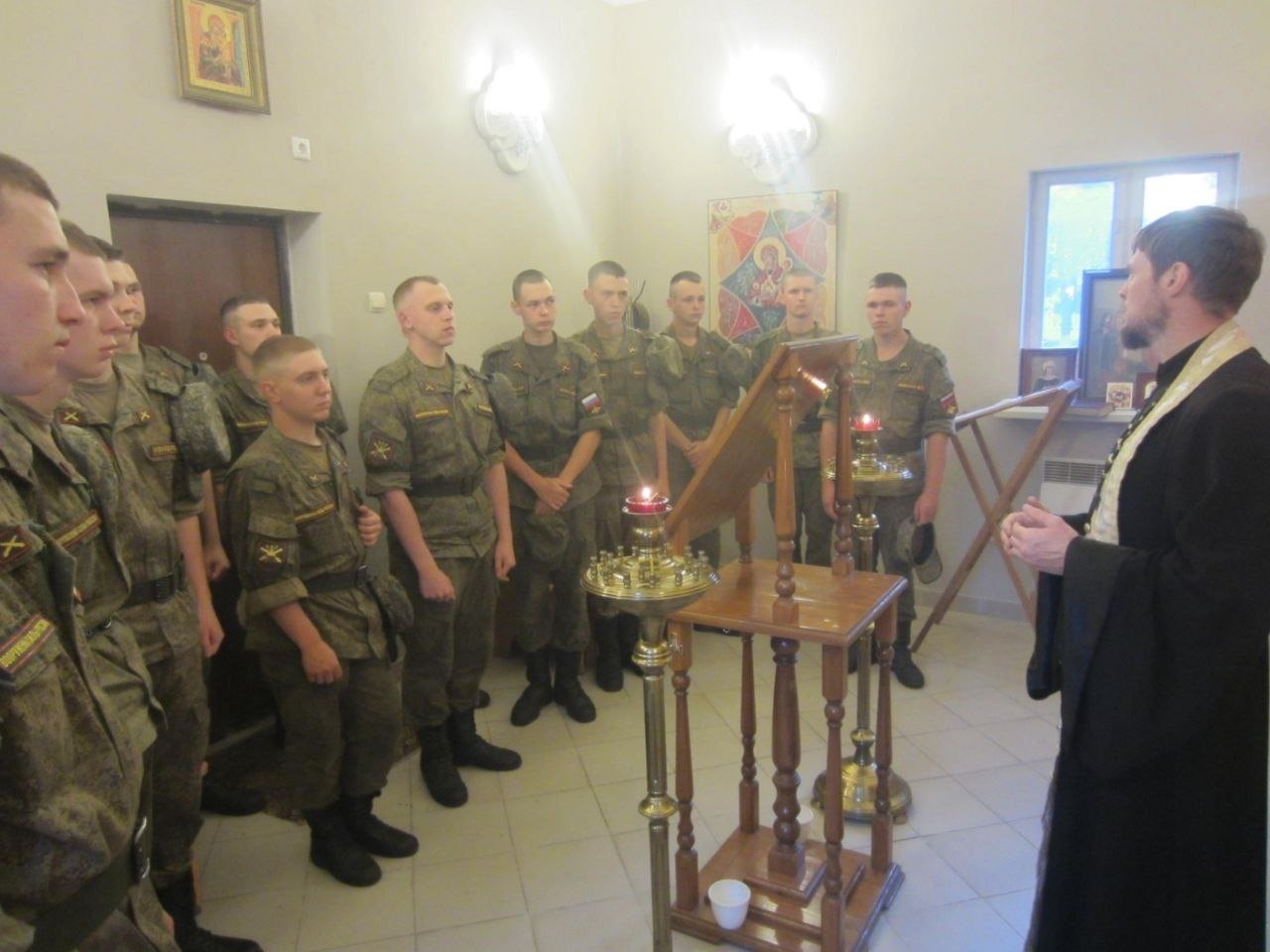 22 июня военнослужащие одного из воинских подразделений г.о Коломна молились за Божественной литургией в храме-часовне в честь Архистратига Божьего Михаила. По окончании службы ответственный за взаимодействие с Вооруженными силами, правоохранительными органами и казачеством в 1-м Коломенском благочинническом округе, настоятель Борисо-Глебского храма г. Коломны иерей Алексий Трошин обратился к собравшимся с проповедью.